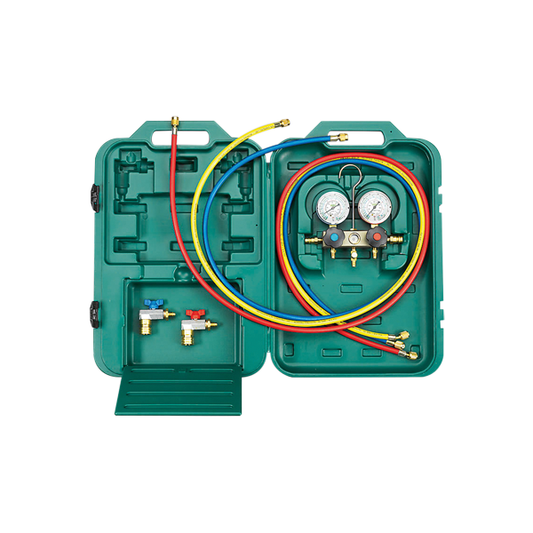 2-Way manifold with Bourdon Type gauges M2 Class 1.6, pressure scale: bar / psi, in sturdy plastic case